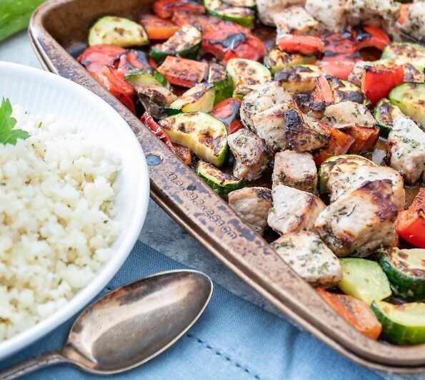 Chop vegetables into chunks. If planning sheet pan dinner cut pork into 1.5 inch cubes.